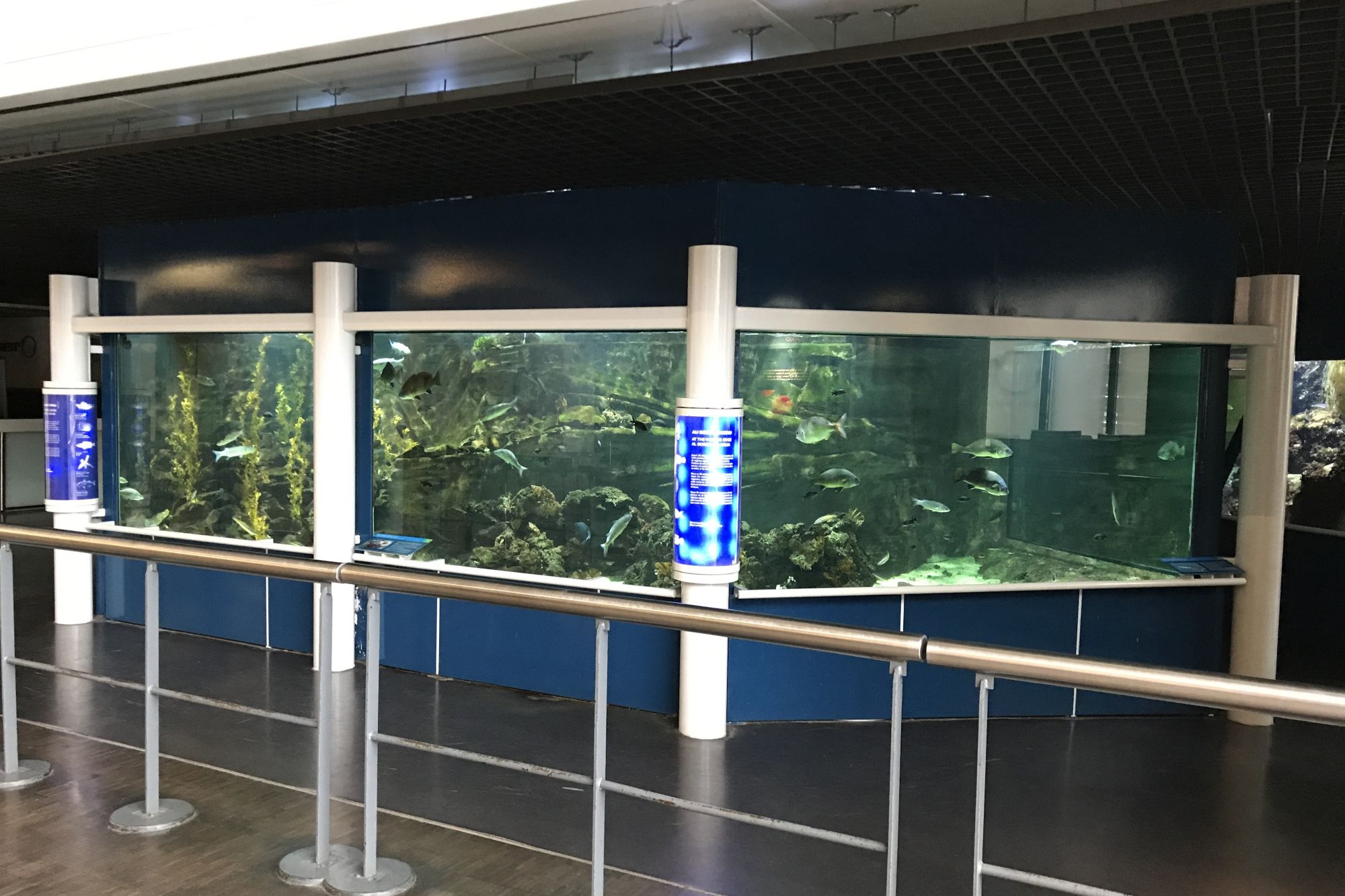 Scindé en 3 bassins de 40 000, 10 000 et 80 000 litres d’eau, cet aquarium donne un aperçu du paysage marin qu’un plongeur peut découvrir en allant jusqu’à 50 mètres de profondeur, sans s’éloigner du rivage