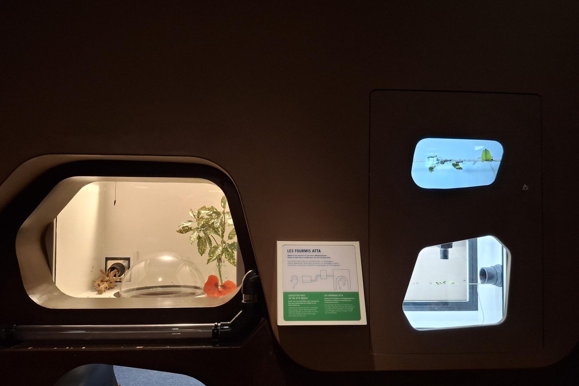 Dans deux terrariums, cétoines, mille-pattes, cloportes, araignées, escargots et fourmis révèlent leurs interactions et leur rôle dans l’équilibre de l’écosystème. On observe la symbiose des fourmis Atta, qui cultivent un champignon au sein d’une société organisée autour d’une reine.